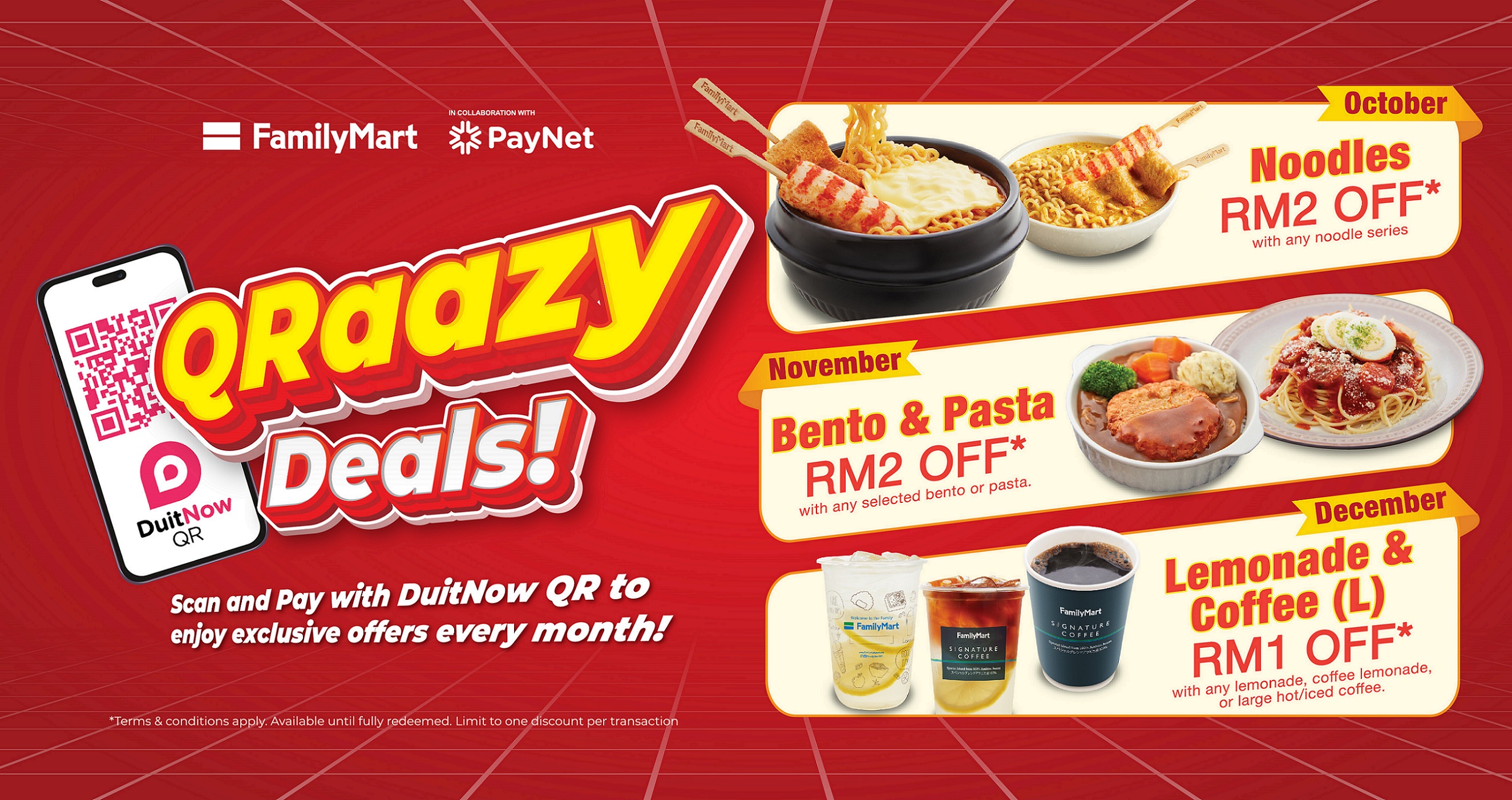 a) This Promotion is open to all customers who make payments using DuitNow QR at any participating FamilyMart outlets in Malaysia during the Promotion Period, except for KLIA2 and Genting outlets.
